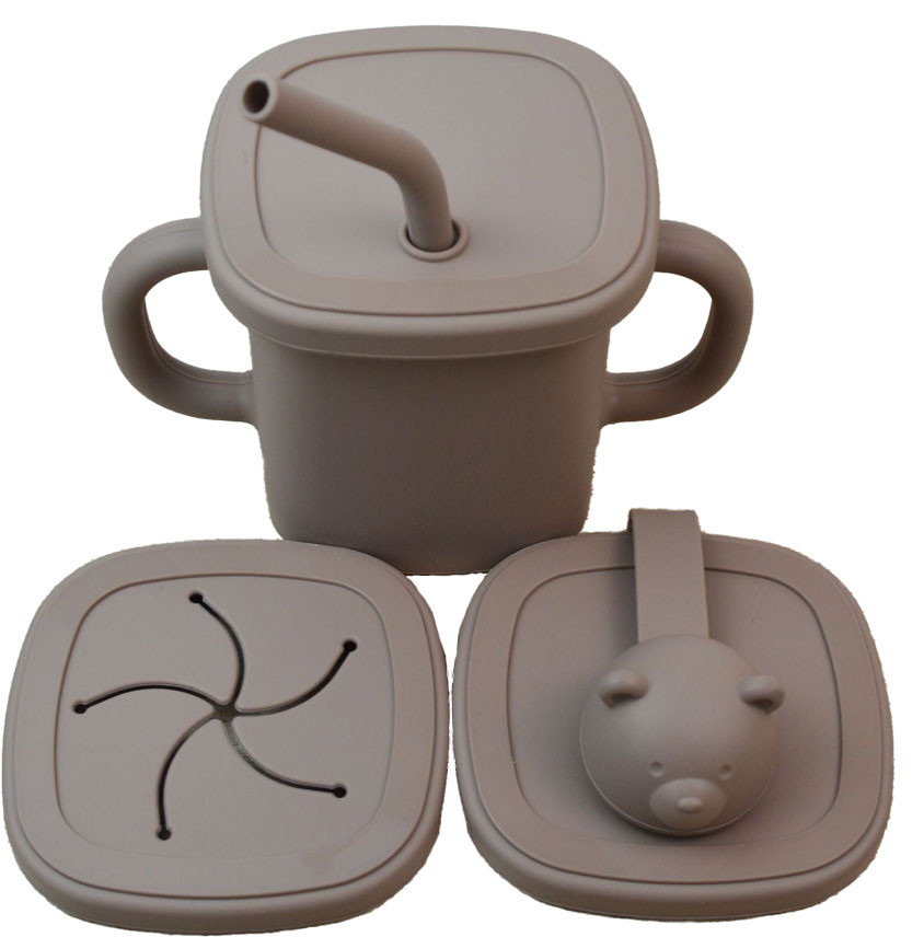 Поильник, чашка-неполивайка это очень полезная вещь. С помощью поильника ребенок учится самостоятельно пить глотками, а родителей защитит от уборки пролитых компотов и соков. Поильник очень удобен не столько для домашнего пользования, сколько во время прогулок и дальних поездок. К выбору поильника следует подойти очень серьезно. Он позволит вашему ребенку научиться пить самостоятельно. Перейти от бутылочки с соской к чашке ребенку поможет удобная детская поилка. Если вашему малышу исполнилось 6-7 месяцев и он сидит, уверенно держит голову можно дать ему поильник. Сначала нужно дать малышу пустой поильник. Ребенок скорее всего, примет его за игрушку и будет его вертеть, кусать, стучать по столу (силиконовый - это плюс, он не повредит себя и не разобъет его). Когда малыш достаточно наиграется, можно налить в поильник немного воды и попробовать его напоить через трубочку. Такая чашка незаменима для детей, которые не могут отказаться от бутылочки. Мягкая трубочка отвечает за равномерный поток жидкости. Силиконовый поильник для детей 3 в 1 чашка силиконовая с ручками, чаша для снеков, поильник с трубочкой, поильник с крышечкой. Данный поильник можно видоизменить благодаря крышкам: это может быть Обучающий поильник, поильник непроливайка - это незаменимая вещь для первого прикорма. Благодаря трубочке ничего не прольется, и одежда малыша останется сухой и чистой. Поильник имеет 2 удобные закругленные ручки, даже самый маленький малыш сможет самостоятельно взять его в руки. Внутри есть мерное деление, что поможет маме налить правильное количество жидкости. Крошечная чашка поильник помогает ребенку переходить из бутылки в Универсальную чашку для разных напитков. Изделие изготовлено из 100% пищевого силикона и пригодно, как для горячих так и для холодных напитков. А затем когда малыш подрастёт, он может быть Снек-стаканчиком - это как непроливайка для напитков, только непросыпайка для печенек, ягод, фруктов и многого другого. Теперь все перекусы малыша вне дома комфортные, приятные ,стильные и без лишних неудобств. Крышка в комплекте убережёт пищу от пыли и грязи. Мягкие лепесточки не ранят ручки малыша и в то же время удерживают еду внутри, не давая ей выпасть. Обращаем ВНИМАНИЕ!, что снек-стаканчик скрывает в себе так же развивательнный элемент: внимательность и концентрацию движений. Преимущества и достоинства перед другими видами детских поильников: Поильник из пищевого силикона не бьется и не имеет запаха Ваш ребенок только учится аккуратности, непроливайка, отлично ему в этом ему поможет Крышечка данного поильника минимизирует затраты родителей на другие виды посуды для малыша. Посуда изготовлена из пищевого силикона соответствует всем международным стандартам качества Поильник можно стерилизовать и мыть в посудомоечной машине Сохраняет свой первоначальный вид в течении всего срока эксплуатации. Полностью безопасен в эксплуатации ребенком. Легко разбирается и моется. Данный поильник не только безопасный, удобный и практичный, но и красивый Наша рекомендация: перед использованием промыть теплой водой с добавлением нейтрального моющего средства. О разнице в цвете: Все товары сделаны на натуральных фотографиях. Из-за различных мониторов и освещения при съемке, факторов окружающей среды и т. д., есть небольшая разница в цвет