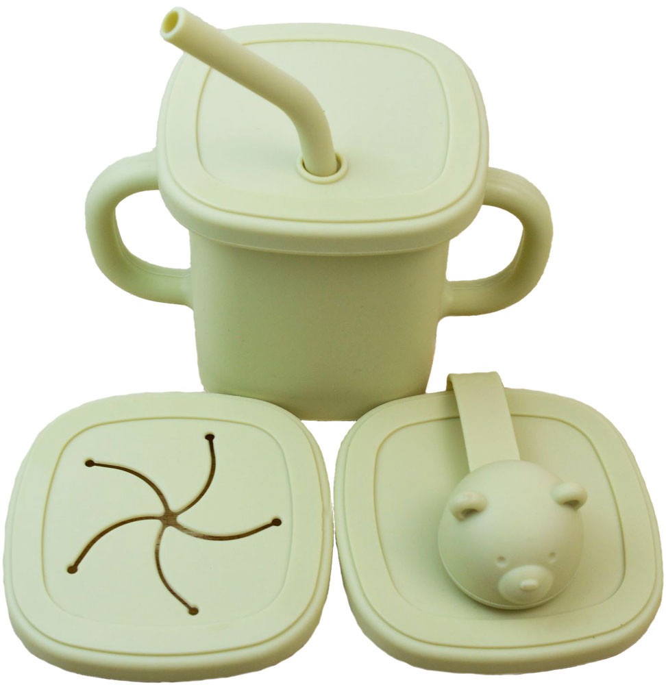 Поильник, чашка-неполивайка это очень полезная вещь. С помощью поильника ребенок учится самостоятельно пить глотками, а родителей защитит от уборки пролитых компотов и соков. Поильник очень удобен не столько для домашнего пользования, сколько во время прогулок и дальних поездок. К выбору поильника следует подойти очень серьезно. Он позволит вашему ребенку научиться пить самостоятельно. Перейти от бутылочки с соской к чашке ребенку поможет удобная детская поилка. Если вашему малышу исполнилось 6-7 месяцев и он сидит, уверенно держит голову можно дать ему поильник. Сначала нужно дать малышу пустой поильник. Ребенок скорее всего, примет его за игрушку и будет его вертеть, кусать, стучать по столу (силиконовый - это плюс, он не повредит себя и не разобъет его). Когда малыш достаточно наиграется, можно налить в поильник немного воды и попробовать его напоить через трубочку. Такая чашка незаменима для детей, которые не могут отказаться от бутылочки. Мягкая трубочка отвечает за равномерный поток жидкости. Силиконовый поильник для детей 3 в 1 чашка силиконовая с ручками, чаша для снеков, поильник с трубочкой, поильник с крышечкой. Данный поильник можно видоизменить благодаря крышкам: это может быть Обучающий поильник, поильник непроливайка - это незаменимая вещь для первого прикорма. Благодаря трубочке ничего не прольется, и одежда малыша останется сухой и чистой. Поильник имеет 2 удобные закругленные ручки, даже самый маленький малыш сможет самостоятельно взять его в руки. Внутри есть мерное деление, что поможет маме налить правильное количество жидкости. Крошечная чашка поильник помогает ребенку переходить из бутылки в Универсальную чашку для разных напитков. Изделие изготовлено из 100% пищевого силикона и пригодно, как для горячих так и для холодных напитков. А затем когда малыш подрастёт, он может быть Снек-стаканчиком - это как непроливайка для напитков, только непросыпайка для печенек, ягод, фруктов и многого другого. Теперь все перекусы малыша вне дома комфортные, приятные ,стильные и без лишних неудобств. Крышка в комплекте убережёт пищу от пыли и грязи. Мягкие лепесточки не ранят ручки малыша и в то же время удерживают еду внутри, не давая ей выпасть. Обращаем ВНИМАНИЕ!, что снек-стаканчик скрывает в себе так же развивательнный элемент: внимательность и концентрацию движений. Преимущества и достоинства перед другими видами детских поильников: Поильник из пищевого силикона не бьется и не имеет запаха Ваш ребенок только учится аккуратности, непроливайка, отлично ему в этом ему поможет Крышечка данного поильника минимизирует затраты родителей на другие виды посуды для малыша. Посуда изготовлена из пищевого силикона соответствует всем международным стандартам качества Поильник можно стерилизовать и мыть в посудомоечной машине Сохраняет свой первоначальный вид в течении всего срока эксплуатации. Полностью безопасен в эксплуатации ребенком. Легко разбирается и моется. Данный поильник не только безопасный, удобный и практичный, но и красивый Наша рекомендация: перед использованием промыть теплой водой с добавлением нейтрального моющего средства. О разнице в цвете: Все товары сделаны на натуральных фотографиях. Из-за различных мониторов и освещения при съемке, факторов окружающей среды и т. д., есть небольшая разница в цвет