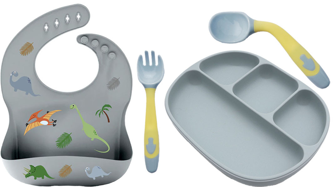 Описание Четырех-секционная силиконовая тарелка приборы в кейсе слюнявчик силиконовый 2Life 4 предмета Серый (vol-10270)