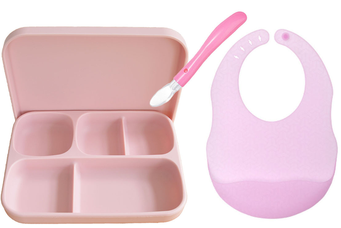 Набор силиконовой посуды, разработан и создан с учётом всех требований мам для кормления детей от 1-го месяца состоит: Cиликоновая пяти-секционная тарелка Ложка Слюнявчик Набор посуды из силикона обладает рядом преимуществ и достоинств перед другими видами детской посуды: 1.Посуда из пищевого силикона не бьется и не имеет запаха 2. Представленный набор посуды имеет нужные изгибы для удобства при эксплуатации 3.Посуда изготовлена из пищевого силикона соответствует всем международным стандартам качества 4.Посуду можно стерилизовать и мыть в посудомоечной машине 5.Силиконовую посуду можно использовать в духовке, в пароварке или в СВЧ 6.Силиконовая тарелка: снабжена присоской, что обеспечивает устойчивость посуды на столике для кормления или на любой другой гладкой и чистой поверхности. 7.Вся посуда сохраняет свой первоначальный вид в течении всего срока эксплуатации. Секционная силиконовая тарелка с пяти секций на присоске. В ней можно готовить пищу для ребёнка, совмещать разные виды продуктов по консистенции и по температуре. Тарелка снабжена присоской на дне и не скользит по поверхности столика, - это особенно удобно когда малыш захочет учиться кушать самостоятельно, но также есть выступ, что бы легко отцепить липучку. Тарелка снабжена присоской на дне и не скользит по поверхности столика, - это особенно удобно когда малыш захочет учиться кушать самостоятельно, но также есть выступ, что бы легко отцепить липучку. В комплекте с тарелкой идет удобная силиконовая ложка, которая обеспечивает комфортный и удобный захват пищи. Эта универсальная ложка идеально подходит для детей разного возраста, обеспечивая мягкий и безопасный контакт с пищей. Ложка не повредят нежные ещё не окрепшими десна и первые зубы малыша даже при нажатии на столовые предметы. Дополнительно в комплект входит стильный слюнявчик из мягкого силикона. Он предназначен для защиты одежды от попадания пищи и жидкости, что делает его идеальным аксессуаром для кормления малышей или для использования во время приема пищи в дороге. Наша рекомендация: перед использованием промыть теплой водой с добавлением нейтрального моющего средства. О разнице в цвете: Все товары сделаны на натуральных фотографиях. Из-за различных мониторов и освещения при съемке, факторов окружающей среды и т. д., есть небольшая разница в цвете, которая объективна и ее нельзя избежать! Хроматическая аберрация не является проблемой качества.