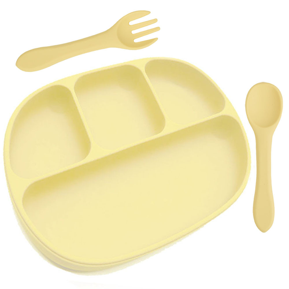 Набор силиконовой посуды, разработан и создан с учётом всех требований мам для кормления детей от 1го месяца до 5 лет, состоит из 3 предметов: 1.Четырех-секционная силиконовая тарелка 2.Вилка 3.Ложка Набор посуды из силикона обладает рядом преимуществ и достоинств перед другими видами детской посуды: 1.Посуда из пищевого силикона не бьется и не имеет запаха 2. Представленный набор посуды имеет нужные изгибы для удобства при эксплуатации 3.Посуда изготовлена из пищевого силикона соответсвует всем международным стандартам качества 4.Посуду можно стерилизовать и мыть в посудомоечной машине 5.Силиконовую посуду можно использовать в духовке, в пароварке или в СВЧ 6.Силиконовые тарелки: секционная и круглая снабжены присосками, что обеспечивает устойчивость посуды на столике для кормления или на любой другой гладкой и чистой поверхности. 7.Вся посуда сохраняет свой первоначальный вид в течении всего срока эксплуатации. Секционная силиконовая тарелка с четырех секций на присоске. В ней можно готовить пищу для ребёнка, совмещать разные виды продуктов по консистенции и по температуре. Тарелка снабжена присоской на дне и не скользит по поверхности столика, - это особенно удобно когда малыш захочет учиться кушать самостоятельно, но также есть выступ, что бы легко отцепить липучку. Набор столовых приборов из пищевого силикона это идеальные: вилочка и ложечка для начала прикорма. Удобные и аккуратные ложечка и вилочка с данного набора не повредят нежные ещё не окрепшими десна и первые зубики малыша даже при нажатии на столовые предметы. Особая форма и небольшой объём необходимы для плавного перехода малыша от груди к ложке. Наша рекомендация: перед использованием промыть теплой водой с добавлением нейтрального моющего средства. О разнице в цвете: Все товары сделаны на натуральных фотографиях. Из-за различных мониторов и освещения при съемке, факторов окружающей среды и т. д., есть небольшая разница в цвете, которая объективна и ее нельзя избежать! Хроматическая аберрация не является проблемой качества.