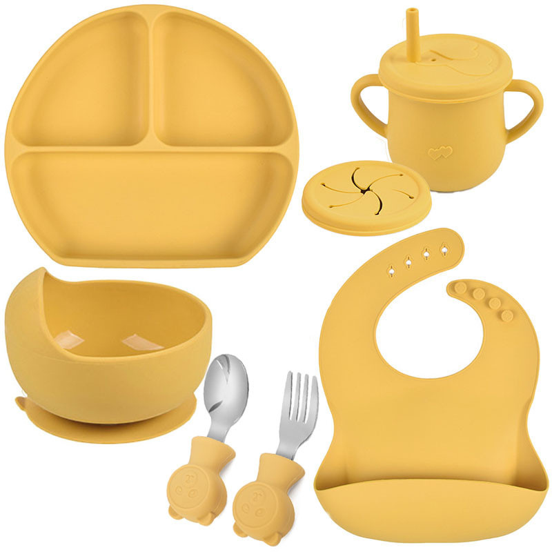 Набор силиконовой посуды, разработан и создан с учётом всех требований мам для кормления детей от 4х месяцев до 5 лет, состоит из предметов: