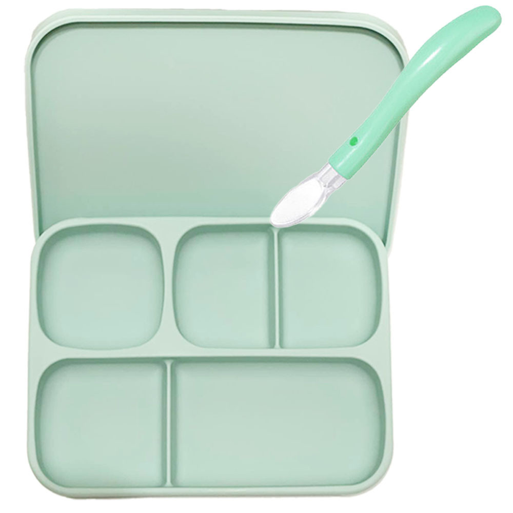 Набор силиконовой посуды, разработан и создан с учётом всех требований мам для кормления детей от 1го месяца состоит: Cиликоновая пяти-секционная тарелка Ложка Набор посуды из силикона обладает рядом преимуществ и достоинств перед другими видами детской посуды: 1.Посуда из пищевого силикона не бьется и не имеет запаха 2. Представленный набор посуды имеет нужные изгибы для удобства при эксплуатации 3.Посуда изготовлена из пищевого силикона соответсвует всем международным стандартам качества 4.Посуду можно стерилизовать и мыть в посудомоечной машине 5.Силиконовую посуду можно использовать в духовке, в пароварке или в СВЧ 6.Силиконовая тарелка: снабжена присоской, что обеспечивает устойчивость посуды на столике для кормления или на любой другой гладкой и чистой поверхности. 7.Вся посуда сохраняет свой первоначальный вид в течении всего срока эксплуатации. Секционная силиконовая тарелка с пяти секций на присоске. В ней можно готовить пищу для ребёнка, совмещать разные виды продуктов по консистенции и по температуре. Тарелка снабжена присоской на дне и не скользит по поверхности столика, - это особенно удобно когда малыш захочет учиться кушать самостоятельно, но также есть выступ, что бы легко отцепить липучку. Тарелка снабжена присоской на дне и не скользит по поверхности столика, - это особенно удобно когда малыш захочет учиться кушать самостоятельно, но также есть выступ, что бы легко отцепить липучку. В комплекте с тарелкой идет удобная силиконовая ложка, которая обеспечивает комфортный и удобный захват пищи. Эта универсальная ложка идеально подходят для детей разного возраста, обеспечивая мягкий и безопасный контакт с пищей. Ложка не повредит нежные ещё не окрепшими десна и первые зубы малыша даже при нажатии на столовые предметы. Наша рекомендация: перед использованием промыть теплой водой с добавлением нейтрального моющего средства. О разнице в цвете: Все товары сделаны на натуральных фотографиях. Из-за различных мониторов и освещения при съемке, факторов окружающей среды и т. д., есть небольшая разница в цвете, которая объективна и ее нельзя избежать! Хроматическая аберрация не является проблемой качества.