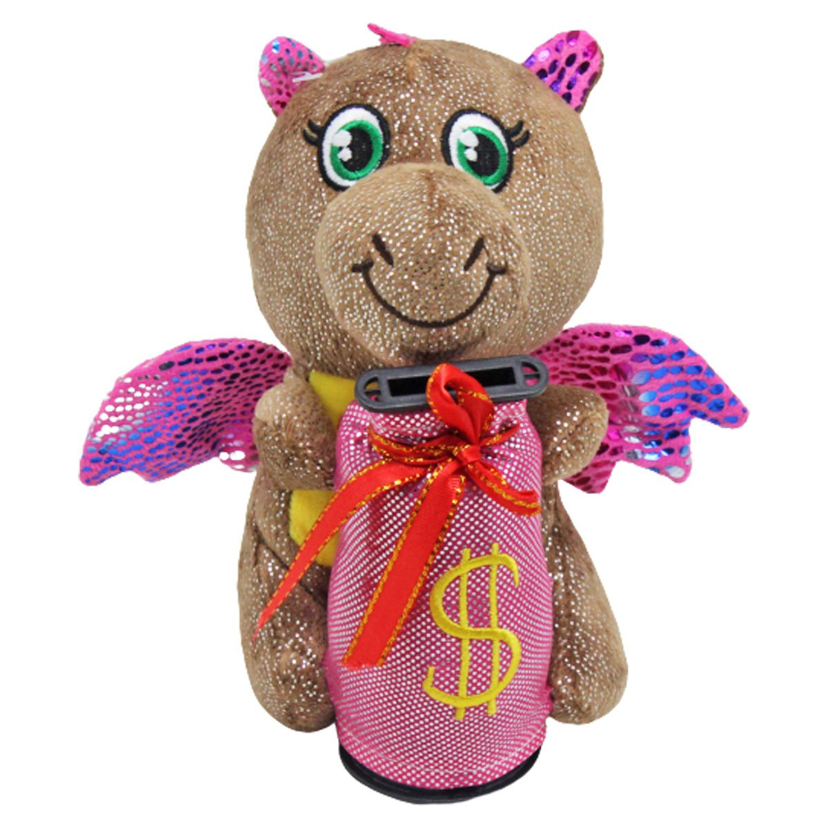 Копилка музыкальная "Дракончик", с крыльями. Мягкая, приятная на ощупь игрушка, которая держит в лапах мешочек для денег. Как только монета опускается в копилку, дракончик начинает петь веселую песенку (на украинском языке). Игрушка оснащена присоской на петельке, с помощью которой можно прикрепить ее к любой гладкой поверхности. Размер: 21 х 17 х 11 см.
