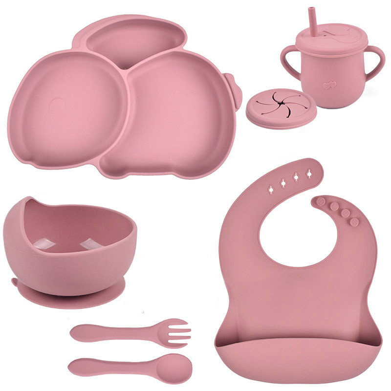Набор силиконовой посуды 2Life Y19 из 7 предметов на присоске Розовый (v-11291)