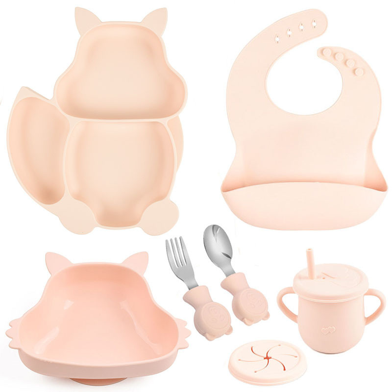 Набор детской посуды на присоске 2Life Белка Y4 из 7 предметов Розовый (v-11311)
