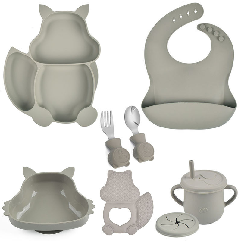 Описание Набор детской посуды на присоске 2Life Белка Y22 из 7 предметов Серый (v-11340)
