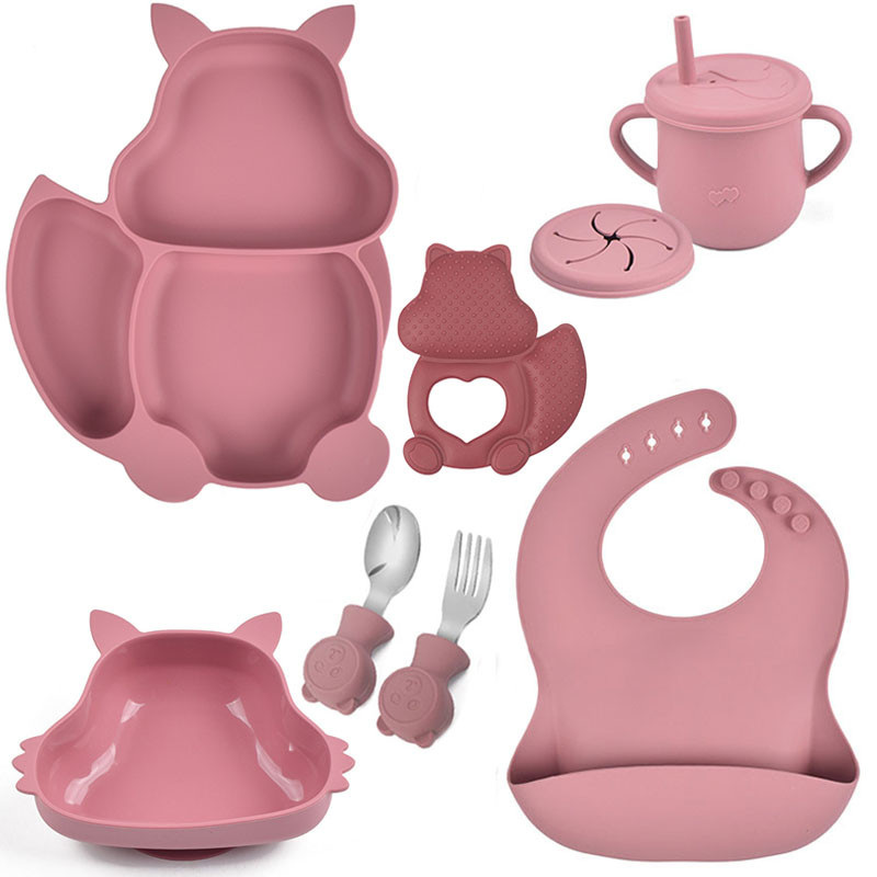Набор детской посуды на присоске 2Life Белка Y19 из 7 предметов Розовый (v-11339)