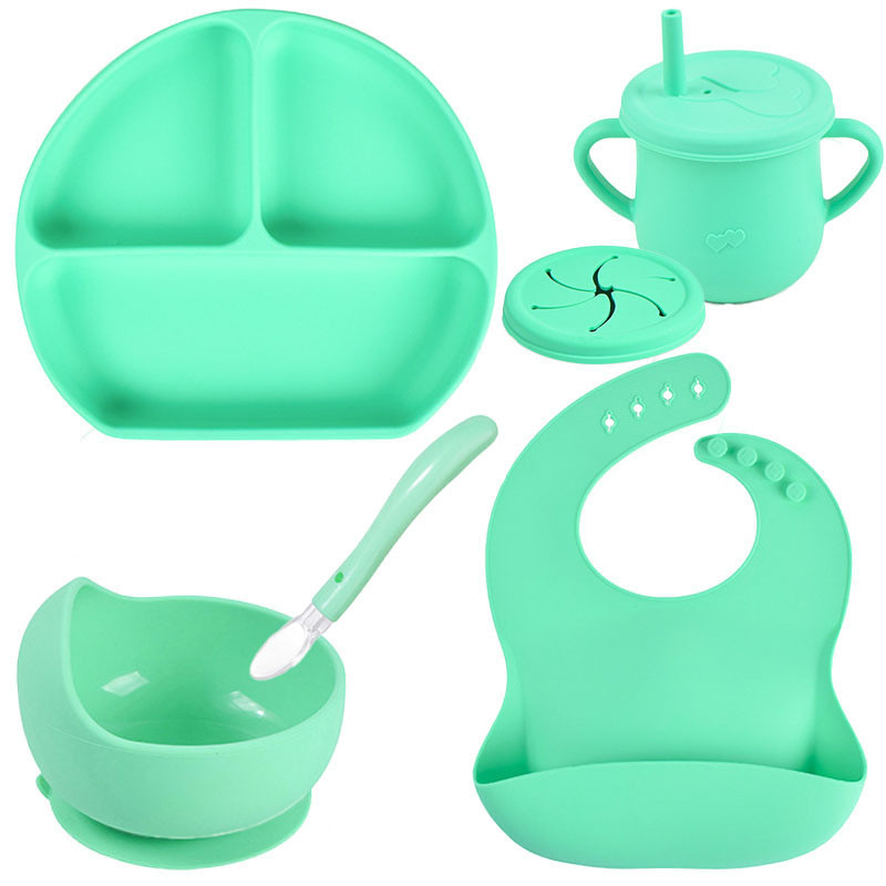 Набор детской силиконовой посуды 2Lie Y13 из 6 предметов Мятный (v-11369)