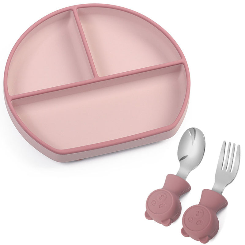Силиконовая трехсекционная тарелка 2Life Y26 и металлические приборы Y19 Розовый с малиновым (v-11548) Ровно