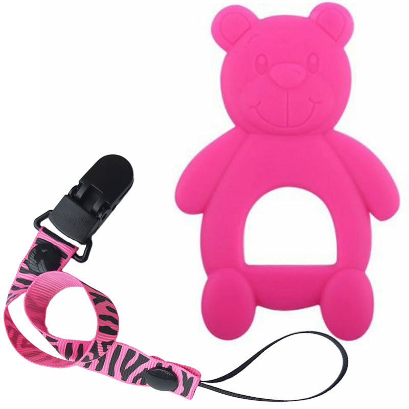 Описание Силиконовый прорезыватель-игрушка и держатель 2Life Мишка Y14 Розовый (v-11623)