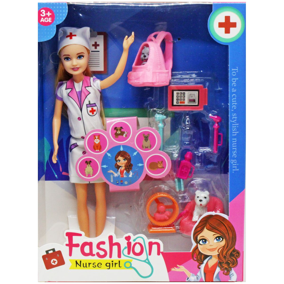 Набор включает в себя куклу, одетую в профессиональный костюм ветеринара, а также все необходимые принадлежности для заботы о животных. В комплекте вы найдете рюкзачок-переноску с милым песиком внутри, песика на удобной лежанке, хомячка, который весело крутится в колесе, и планшет доктора для записей о здоровье питомцев. С этим набором дети могут разыгрывать различные сценарии ветеринарной практики, учась заботиться о животных и развивая свои навыки в игровой форме.