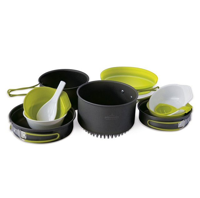 Набір туристичного посуду Pingiun Quadri з радіатором з розрахунку на 3-5 чоловік. Набір складається з двох казанків різного об'єму. Наявність теплообмінника дозволяє заощадити до 30% газу.