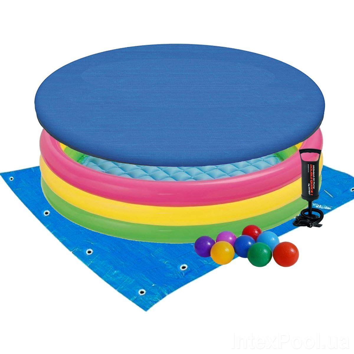 Детский надувной бассейн Intex 56441-2 «Радуга», 168 х 46 см, с шариками 10 шт, подстилкой, насосом (hub_eh45rk)