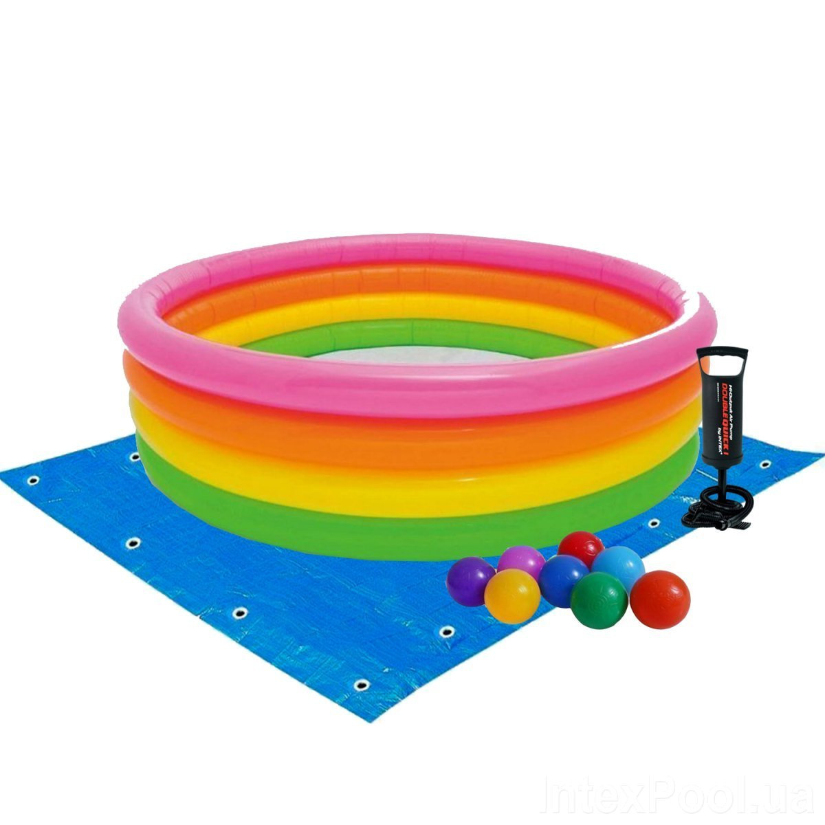 Детский надувной бассейн Intex 57412-2 «Радужный», 114 х 25 см, с шариками 10 шт, подстилкой, насосом (hub_g6xo8p)