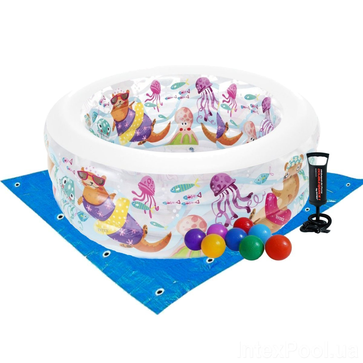 Детский надувной бассейн Intex 58480-2 «Аквариум», 152 х 56 см, с шариками 10 шт, подстилкой, насосом.