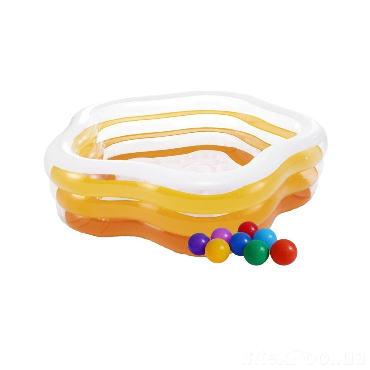 Детский надувной бассейн Intex 56495-1 «Морская звезда», 183 х 180 х 53 см, желтый, с шариками 10 шт.