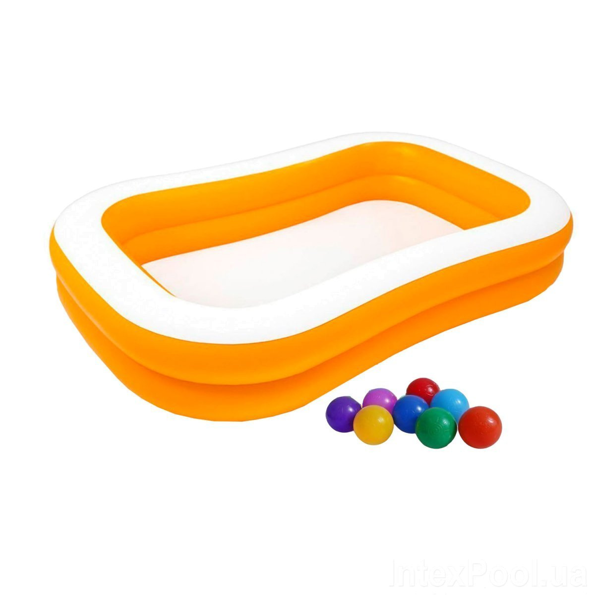 Детский надувной бассейн Intex 57181-2 «Мандарин», 229 х 147 х 46 см, с шариками 10 шт, подстилкой, насосом (hub_b7t2oj)