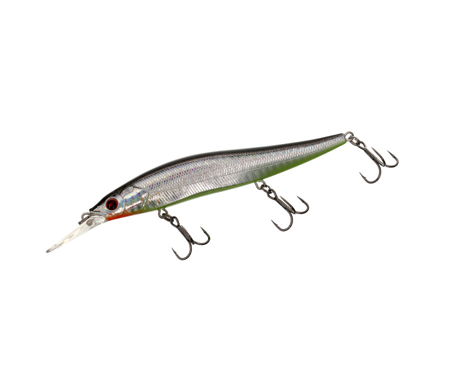Плавающий воблер Flagman Bossy 110 F DR отличная приманка для быстрого и эффективного облова обширных мелководий, несмотря на его большую лопатку. Этот воблер минноу вытянутой формы весит 14,4 г и имеет длину 110 мм. Благодаря системе дальнего заброса Flagman Bossy 110 F летит не только далеко, но и очень точно. Подвижные стальные шарики при забросе уходят далеко в хвост, смещая туда центр тяжести. При первом же рывке они возвращаются на место и фиксируются специальным приливом снизу, благодаря чему при проводке балансировка приманки остается неизменной. Шарики издают негромкий звук высокой частоты.