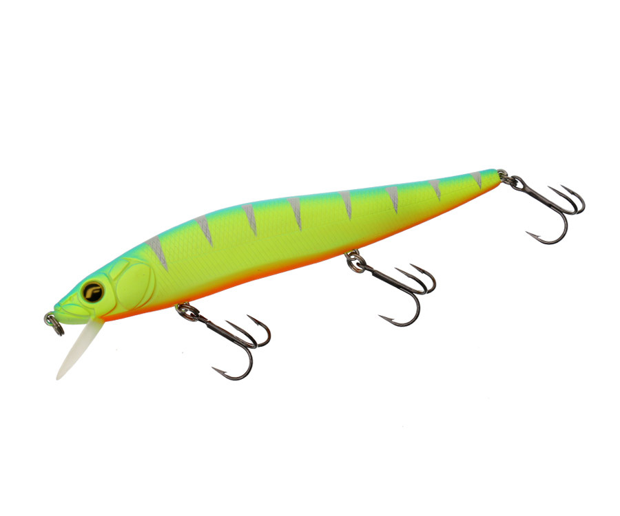 Отличная приманка для быстрого и эффективного облова обширных мелководий. Это воблер minnow вытянутой формы, весит он 22,5 г и имеет длину 130 мм. Благодаря системе дальнего заброса летит не только далеко, но и очень точно. Подвижные стальные шарики при забросе уходят далеко в хвост и сильно смещают туда центр тяжести. При первом же рывке они возвращаются на место и фиксируются специальным приливом снизу, благодаря чему при проводке балансировка остается неизменной. Шарики издают относительно негромкий звук высокой частоты. Воблер обладает собственной игрой, но равномерная проводка не выступает основной, его специализация твичинг. При рывках Bossy совершает длинные заплывы по инерции, имеющие сложную траекторию. Причем, он сразу резко отклоняется в сторону, и амплитуда его движений получается очень большой. Bossy суспендер, после остановки движения он зависает в толще воды. Длительные паузы нередко провоцируют на атаку щуку и крупного окуня. Лобовое сопротивление воблера не слишком велико, поэтому для рывковой проводки нет необходимости использовать сверхжесткие удилища.