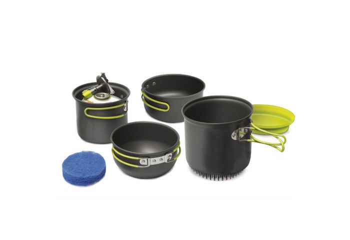 Набор алюминиевой посуды Pinguin Double X с теплообменным элементом на одной из емкостей, который позволяет экономить до 30% газа при использовании баллона. Набор состоит из 2 кастрюль, 2 крышек, 1 защитной крашки теплообменного жлемента, которую можно использовать как плоскую миску и 1 губки для мытья. Поверхностный слой анодирован, что придает изделиям огнестойкость, износостойкость. Меньшая кастрюля помещается в большую. Комплект обеспечивает безопасную транспортировку газовых баллонов и маленькой горелки. Горелка и картридж не включены в комплект.
