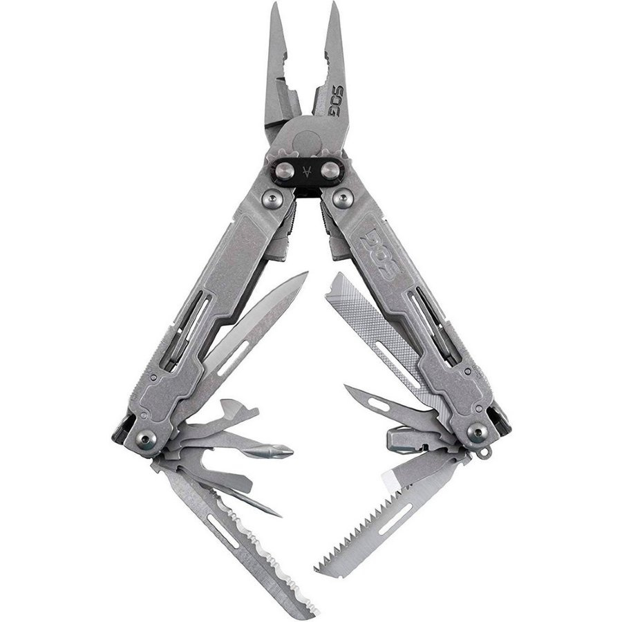В общей сложности 21 инструмент для тяжелых условий эксплуатации, PowerAccess Deluxe из нержавеющей стали, в том числе два лезвия ножа, открывалка для бутылок, деревянная пила, две плоские отвертки, отвертка Phillips и отвертка 1/4 "с набором шестигранных бит.