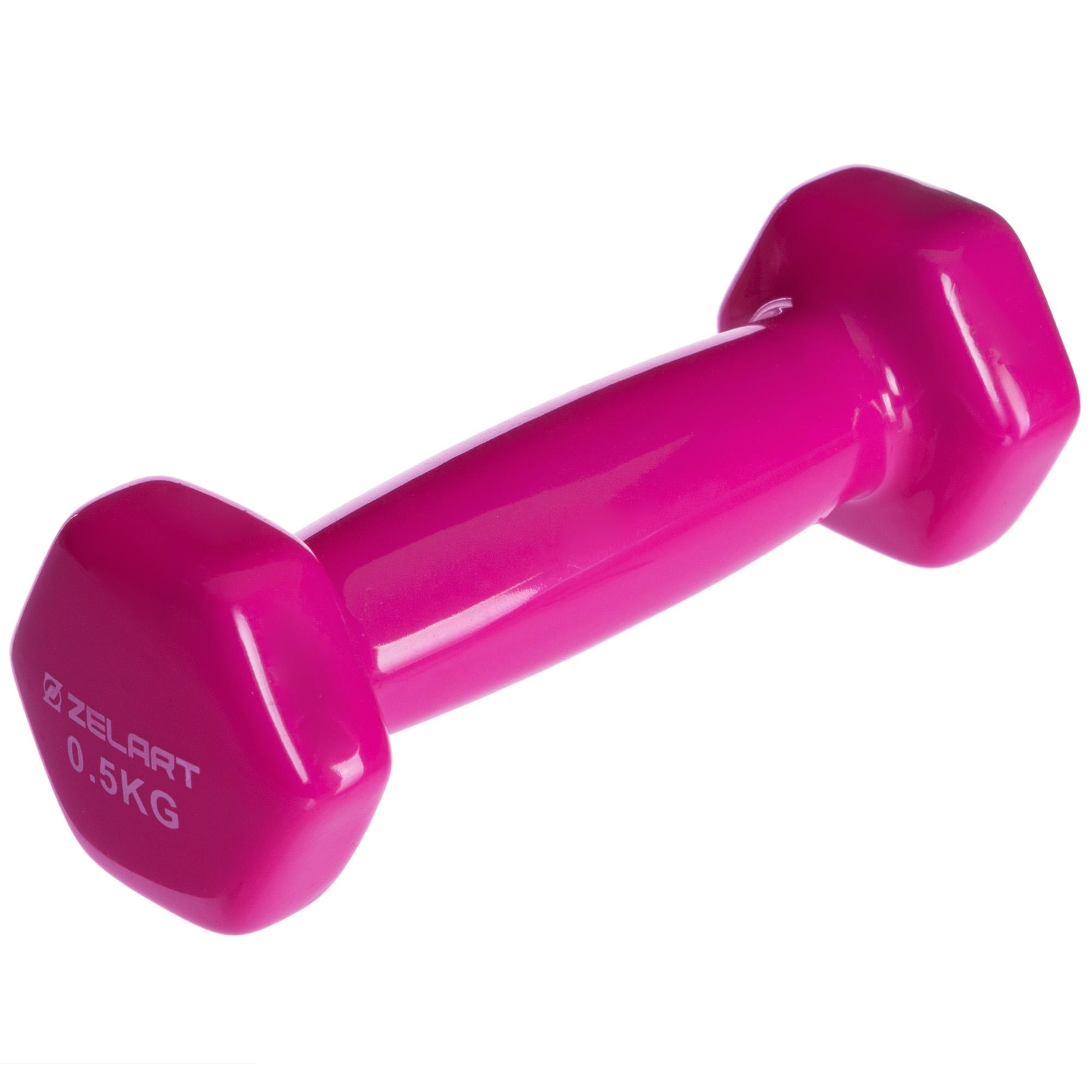 Характеристики товара Гантель для фитнеса с виниловым покрытием Zelart 500 г Розовый (TA-2777-0,5)