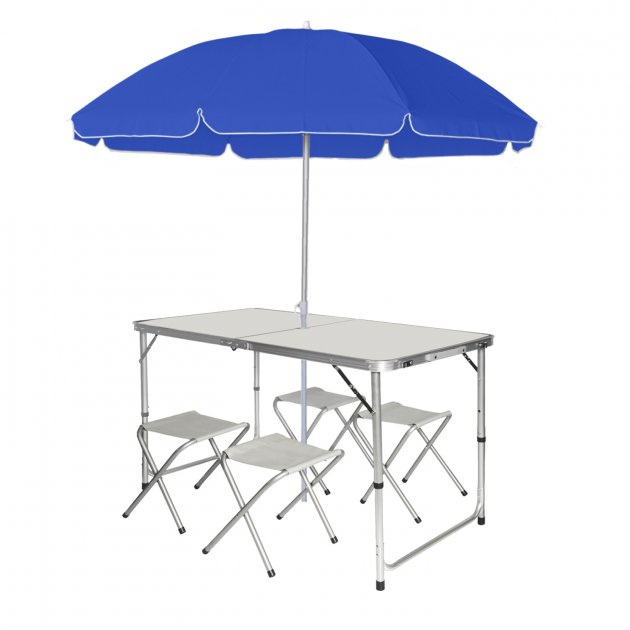 Набор туристический раскладной стол со стульями с зонтом 1.8 м Easy Campi для пикника, кемпинга, рыбалки в чемодане - комплект для поездок на пикник. Он очень легко разбирается и моется. Лёгкий, компактный и практичный комплект не станет обременительным грузом и значительно преобразит Ваш отдых.