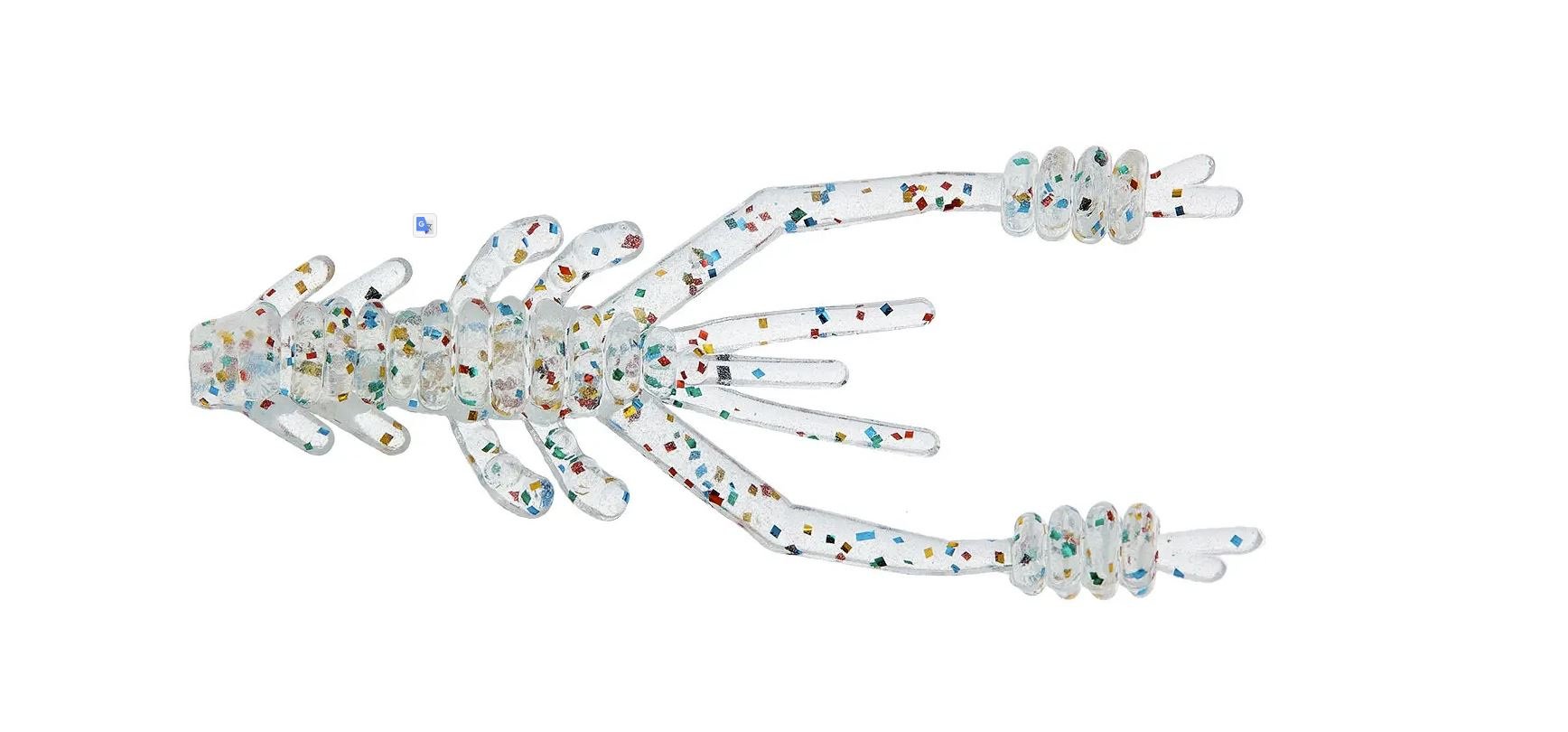 Силикон Reins Ring Shrimp 2"- имитация креветки, вызывающая большой интерес у наших рыб, по-видимому она воспринимается как мелкий рачок или другая подводная живность, а съедобные свойства материала долго не дают рыбе понять свою фатальную ошибку. Большое колличество мелких подвижных элементов при проводке даёт эфект постоянного хаотичного шевеления. Два объёмных набалдашника на клешнях, которые являются плавающими, при наличии течения долго колеблются на паузе, побуждают даже неактивную рыбу подобрать со дна лёгкую добычу. Приманку желательно монтировать на шарнирном монтаже с использованием самых мелких размеров офсетных крючков, которые не будут перегружать приманку. Большая версия креветки показывает хорошие результаты и на поводковых оснастках. Типичные потребители этого морепродукта - все виды хищных рыб и практически все виды мирных речных рыб, размер пасти которых позволяет его проглотить.