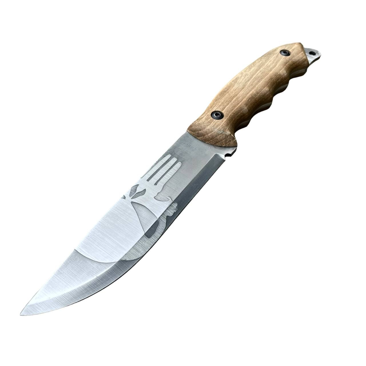 Полноразмерный нож как для ежедневного ношения так и для туристических походов, бушкрафта и лесных приключений. Конструкция ножа “Фулл Танг”. Нож имеет средние размеры. Он обладает большой прочностью и может выдерживать значительные нагрузки за счет толщины обуха и конструкции. Ножом легко выполнять лагерные работы, колоть небольшие поленья, резать ветви. Лезвие ножа сделано из нержавеющей стали 50х14мф, закаленное в 57-58 HRC и хорошо заточено. Имеет ушко. Рукоятка сделана из древесины ореха и покрыта льняным маслом. Рукоятка крепится к ножу с помощью винтов, что позволяет легко разобрать нож и прочистить его от грязи. Также данную модель ножа можно легко и быстро кастомизировать. На клинке вытравлены узоры.