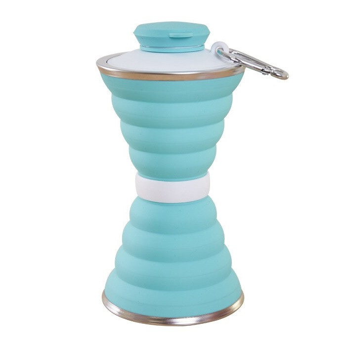 Складная силиконовая бутылка для воды и напитков с карабином water bottle 600 мл Бирюзовый (С051121)