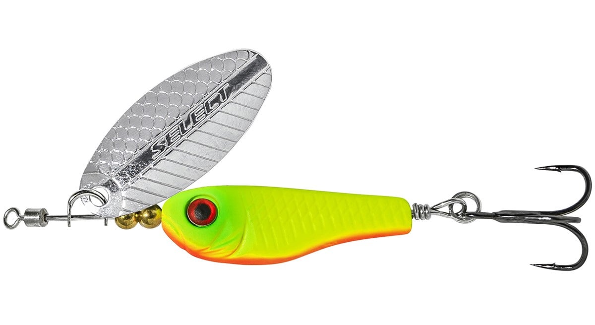 Блесна Select Heli-X - совершенная вертушка для рыбалки на течении. Сердечник сделан в форме малька, он изготовлен из тяжелого металла и имеет асимметричную форму. Благодаря этому, приманка хорошо держит течение и её можно забросить достаточно далеко. Вместо передней петли на оси блесны вмонтирован вертлюжок, который вместе с асимметричным сердечником, максимально уменьшает закручивание шнура во время рыбалки. Лепесток имеет рельефную текстуру в виде чешуи рыбы, что создает в воде дополнительные привлекательные блики. Конструкция этой вертушки позволяет использовать ее не только на течении. Heli-X быстро включается в работу даже в стоячей воде, и даже больше, её можно проводить на довольно медленной скорости, что очень нравится пассивному хищнику. Основные трофеи этой блесны: окунь, щука, голавль, жерех и язь, а также форель и хариус, если они есть в водоеме.
