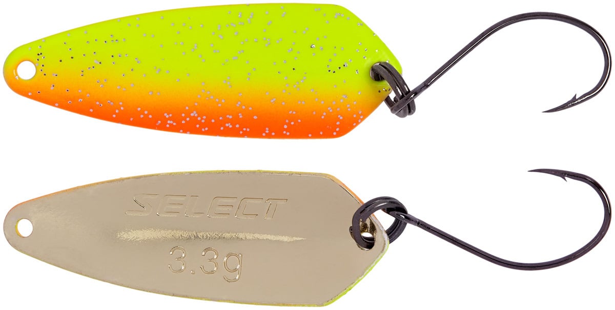 Select Winner– одна из самых популярных моделей микроколебалок среди спортсменов и любителей форелевой ловли. Блесна не «кувыркается» после заброса, благодаря чему летит точно и далеко, позволяя ловить форель на дистанции, недостижимой для широкотелых блесен. Обладает оригинальной игрой, которая способна провоцировать очень пассивную рыбу. Все что остается рыболову – это угадать с цветом Select Winner и наслаждаться мощными поклевками пятнистой красавицы.