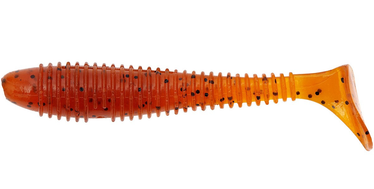 Силикон Select Fatfish - виброхвост с объемным телом, покрытым мягкими ребрами, как и у модели Fetish. У приманки Fatfish в нижней части имеется специальное место для дополнительного подгруза, если предполагается использовать ее в качестве свимбейта. Во время проводки, за счет эластичности материала, хвост очень размашисто виляет по сторонам, вибрация от которого с большого расстояния привлекает рыбу. Ребра на теле выполняют несколько функций. Во-первых, они создают дополнительную вибрацию, привлекающую рыбу. Во-вторых, рифленое тело на много мягче цельного, что положительно сказывается на игре приманки. В-третьих, при поклевке рыбы, ребра легко сминаются и начинают активно выделять вкусовые добавки, содержащиеся в составе силикона, так что рыба не замечает коварства и продолжает его заглатывать. Соблазнительные виляния всем телом и муть, поднимаемая со дна джиг-головкой, активно привлекают внимание рыбы, которая смело бросается на силикон.
