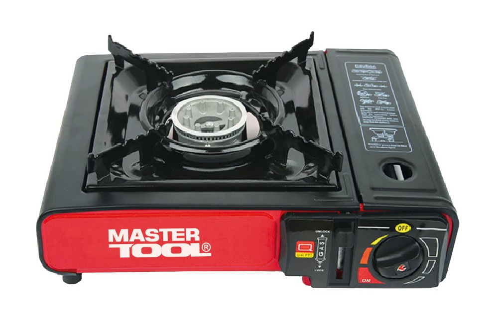 Портативная газовая плита одноконфорочная c пьезоподжигом MASTERTOOL AG в пластиковом кейсе (44-5102) для приготовления пищи на компанию. Работает от стандартного цангового баллона или любого другого с подключением через шланг (плита имеет штуцер для присоединения шланга).