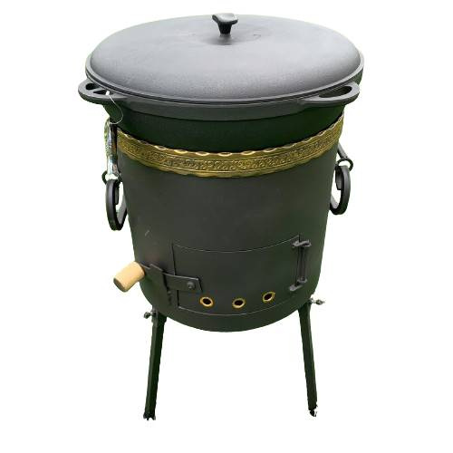 Большой азиатский чугунный казан емкостью 17 л укомплектован чугунной крышкой с ручкой. Предназначен для приготовления блюд на костре или мангале, требующих тушения, томления и приготовления в собственном соку.