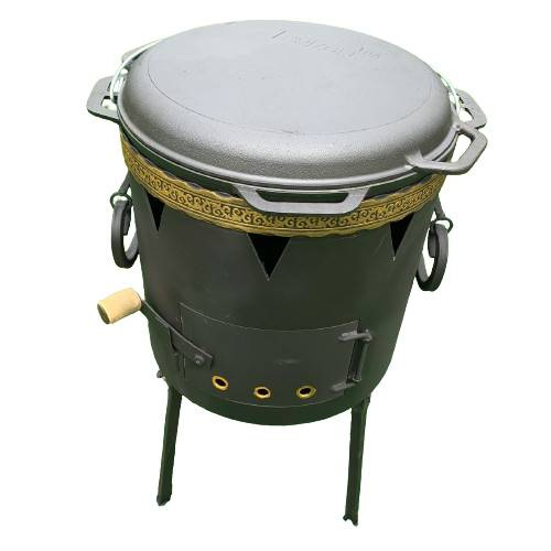Большой азиатский чугунный казан ТМ BRIZOLL емкостью 12 л с крышкой-гриль как на фото. Предназначен для приготовления блюд на костре или мангале, требующих тушения, томления и приготовления в собственном соку.