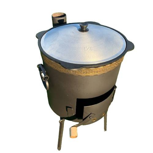 Комплект Казан чугунный узбекский 12 л с печкой с дымоходом (печь Ø400 мм, 3 мм стенки, казан Наманганский, пр-во Узбекистан)