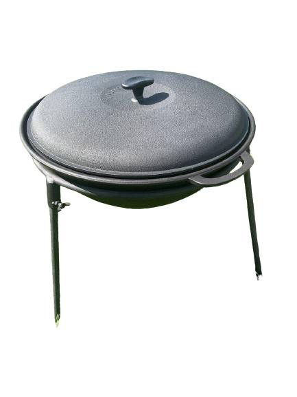 Набор: Казан чугунный узбекский 12 л WOK с чугунной крышкой и треногой в комплекте (толстостенный)