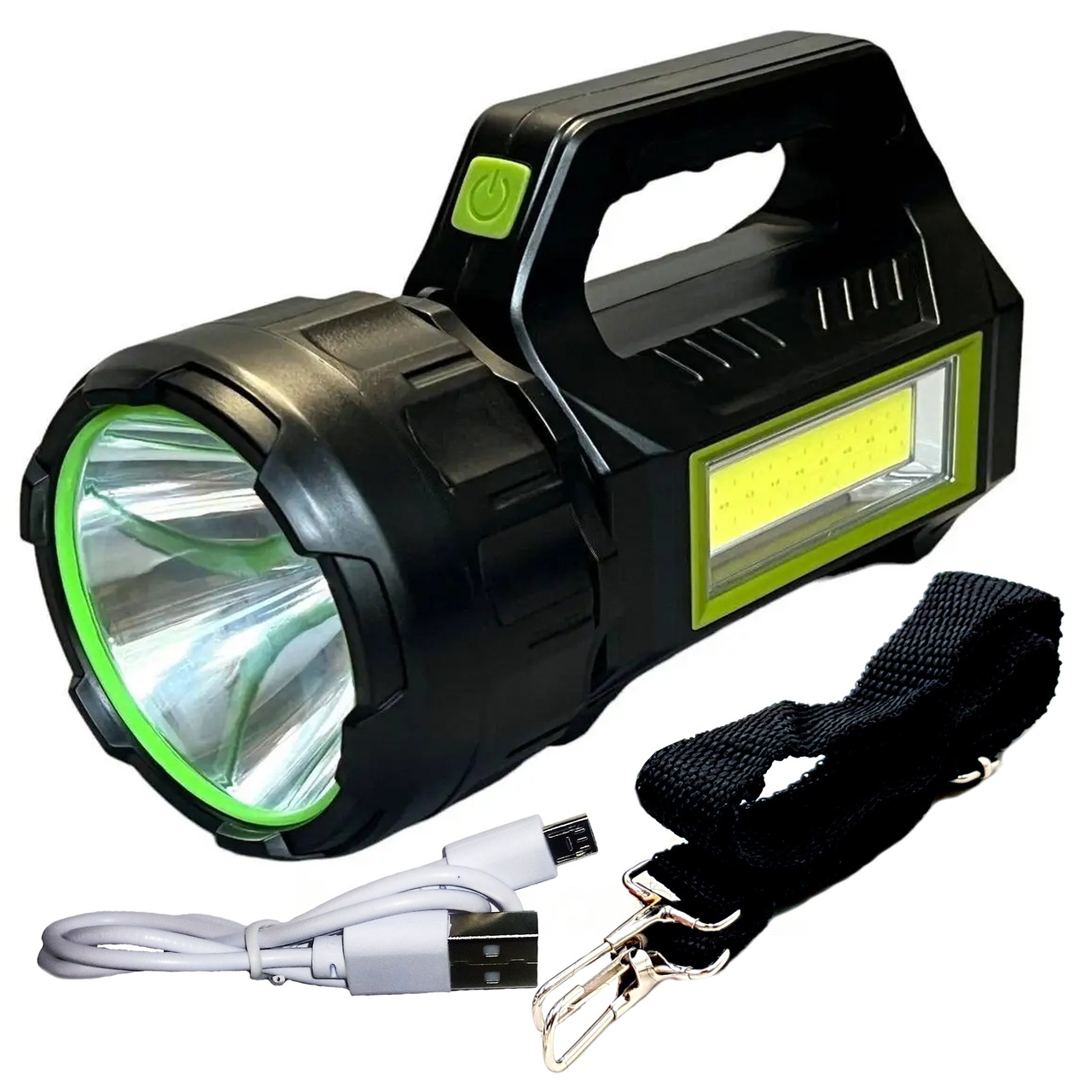 Фонарь Haoerliang HEL-T95 8759 30Вт c Power Bank солнечной панелью Зеленый Мультифункциональный портативный фонарь, с множеством режимов освещения, способен осветить любое место, куда бы вы его ни направили, и будет верным напарником при походах, обходах, кемпинге или просто если остались без света Отличается от других фонарей, большим объемом батареи, что позволяет работать очень продолжительное время, без подзарядки. Большим плюсом будет то, что этот фонарь можно заряжать от солнца, так как в нем встроена солнечная батарея. Также может пригодиться в экстренной ситуации как powerbank, чтобы подзарядить ваш мобильный телефон. Особенности: Прочный и надежный корпус; Прост как в использовании так и в уходе; Имеет две лампы - сбоку и спереди; Есть ремешок для переноски; Заряжается от солнца и сети; Можно зарядить телефон; Предусмотрен индикатор зарядки фонаря.