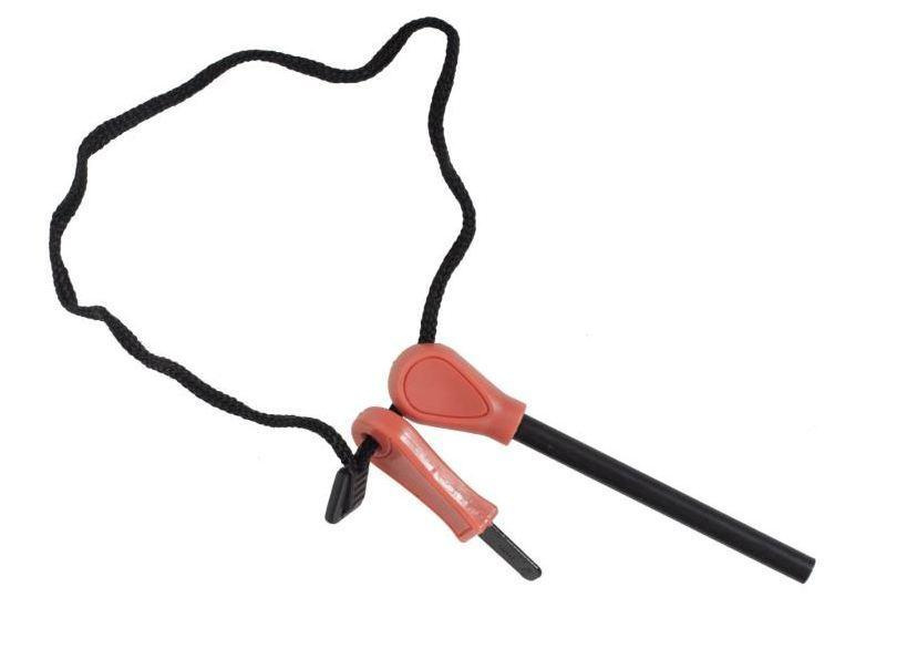 Походное огниво-кресало Bonfire Во многих ситуациях огниво представляет собой чуть ли не единственную возможность развести огонь. Например, отсыревшие спички и пустая зажигалка известны каждому туристу. Разводить огонь руками – скорее удача в сочетании с жарким днём и обилием сухого топлива. Огниво же, искры которого обладают потрясающей температурой, позволит вам разжечь костёр в любую погоду. Изделие состоит из двух частей, скреплённых нейлоновым шнурком для удобства использования и хранения. Добывание огня производится путём «скребущего» движения гранью металлического кресала по поверхности огнива. Искры, появляющиеся в процессе, имеют температуру намного выше, нежели огонёк спички, а потому эффективно зажигают сухостой, деревянную стружку, тонкие сухие ветки. Характеристика: Длина стержня огнива – 8,9 см; Диаметр стержня огнива - 0,75 см; Длинна с ручкой - 12,5 см; Размеры кресала (ДхШ) - 6,5х1,5 см; Общий вес – 52 г. Рекомендуем: для правильного использования огнива стоит использовать хорошо распушенную траву (сухостой помните в руках и подуйте на него), сосновую стружку, верхний слой бересты, толщиной в бумажный лист. Также в качестве растопки хорошо подходит ватный диск. Для получения искр не обязательно оказывать на огниво большое давление. Поднесите стержень максимально близко к готовой растопке (лучше – установите его под небольшим углом на неё) и совершите несколько проводов кресалом по стержню в сторону растопки.