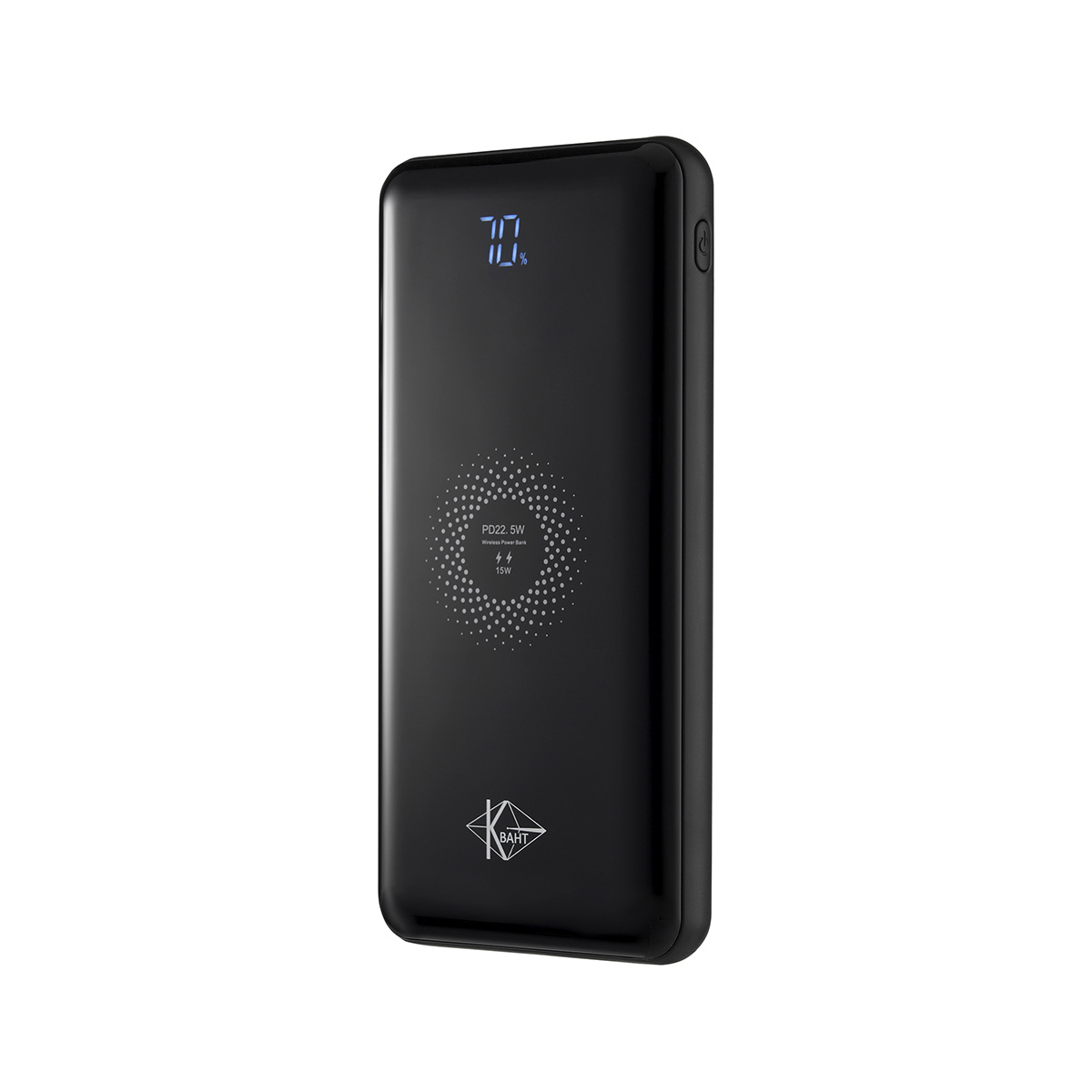 Портативный аккумулятор УМБ PowerBank КВАНТ PD18-2 20000mAh имеет черный матово-глянцевый и современный внешний вид, а также отличается приемлемой ценой. Устройство оснащено современной батареей на 20000 мАч, которой достаточно для неоднократного заряда современного мобильного телефона. Корпус изготовлен из ABS-пластика и встроенного магнита для беспроводной зарядки, устройство имеет компактные размеры и небольшой вес, что позволяет взять его с собой, как в дорожную сумку, так и в карман. Все функциональные разъемы находятся на одной верхней панели устройства, а кнопка питания – на боковой. Цифровой индикатор уровня заряда изготовлен в виде дисплея с отображением информации в процентном соотношении с шагом 1%. Два USB выхода для подключения мобильных устройств обеспечивает суммарную силу тока 5 ампер. Устройство имеет девять современных уровней защиты, что делает его абсолютно безопасным в использовании. Порты (Спецификация): MicroUSB input (QC3.0): 5V/2А, 9V/2А, 12V/1.5А TypeC input (PD2.0): 5V/3А, 9V/2А, 12V/1.5А TypeC output (PD2.0): 5V/3А, 9V/2А, 12V/1.5А USB output (QC3.0): 4.5V/5А, 5V/4.5А, 9V/2А, 12V/1.5А Wireless output: 5w/7.5w/10w/15w Wireless distance: 3-8 mm (эффективность: более 75%) Емкость/номинальная мощность: 20000mAh/74Wh Функции зарядки: Fast charge 3.0, Power delivery 2.0, беспроводная зарядка Размер: 165*80*25мм Максимальная мощность: 22.5W