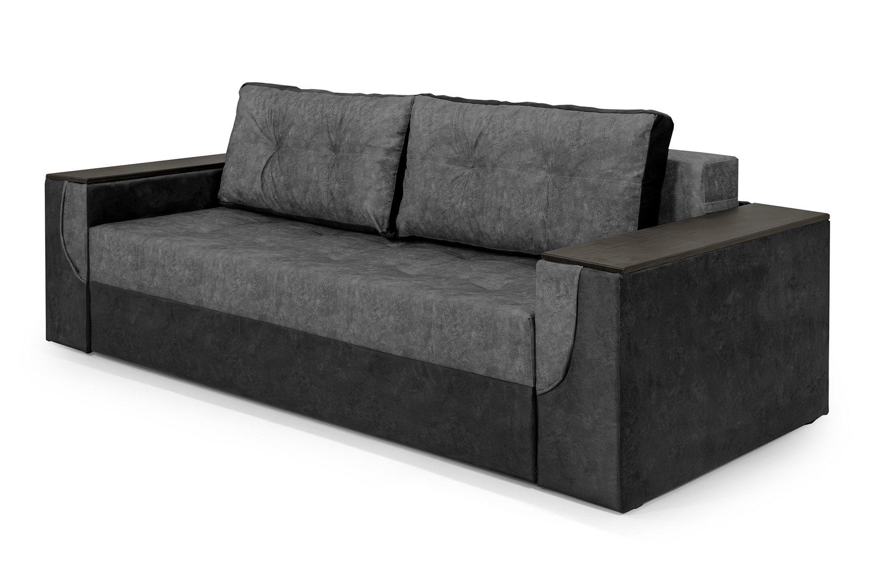В дивані також передбачені функціональні елементи. Бічні підлокітники мають вбудовані відділення для зберігання, що робить його не лише зручним для сидіння, але й корисним для організації простору. У вечірні години диван легко перетворюється на просторе спальне місце, завдяки простому і надійному механізму трансформації – «єврокнижка».