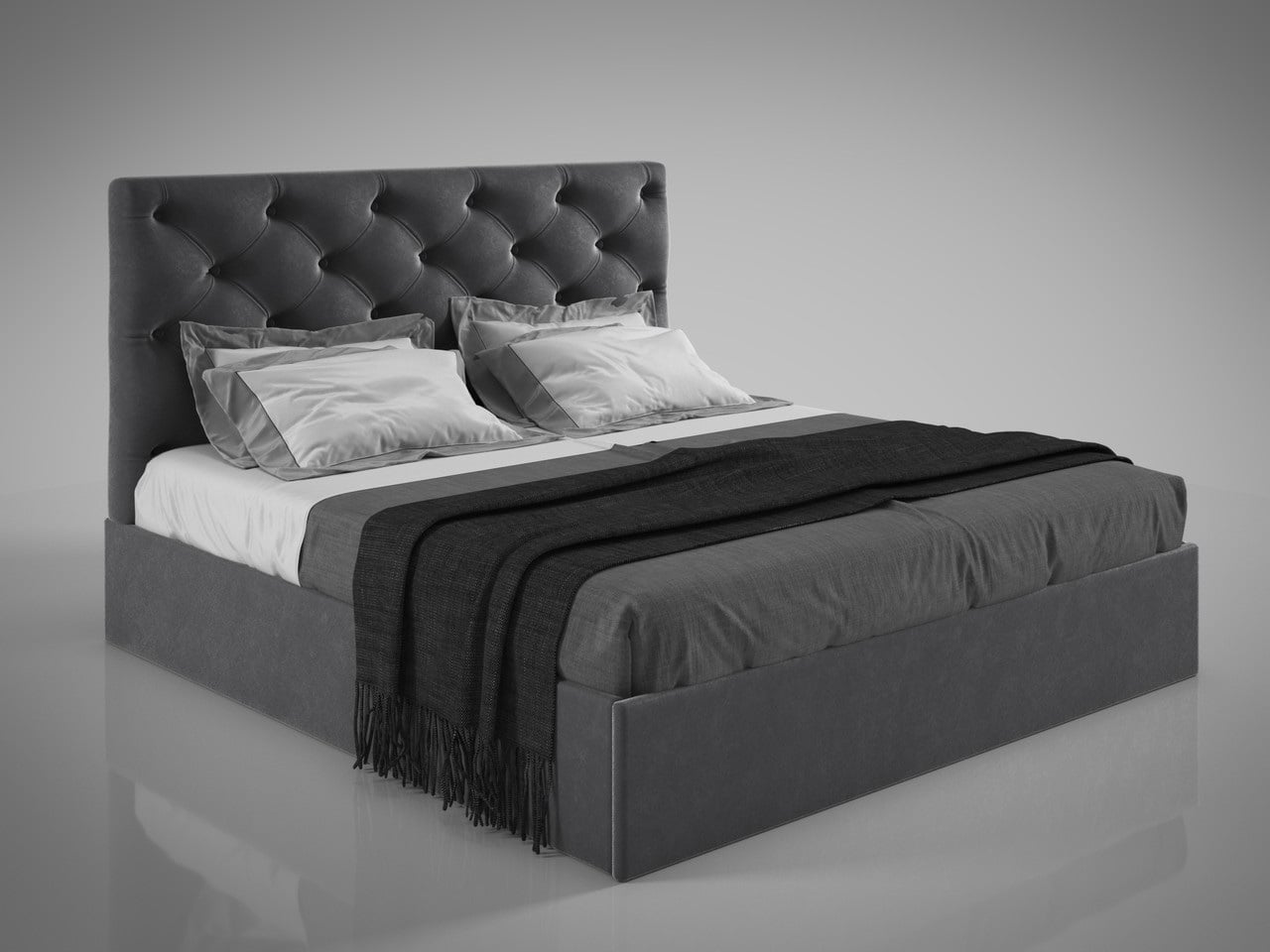Двоспальне ліжко подіум Дайкірі Люкс Sentenzo оголів'я з каретною стяжкою в м'якій рамі 180х200