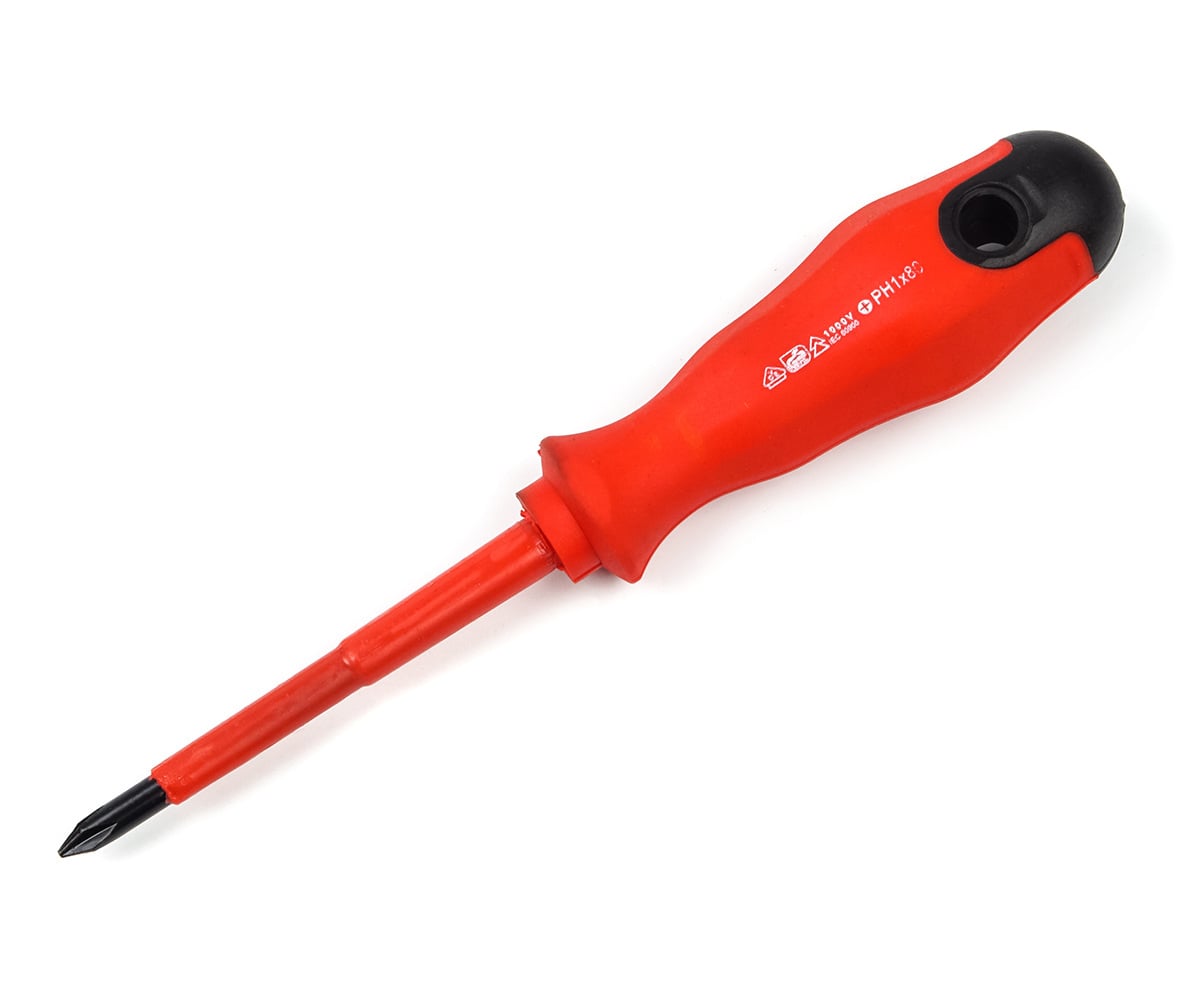 Отвертка диэлектрическая крестовая Polax предназначена для отвинчивания и завинчивания винтов, шурупов и саморезов с крестообразным пазом РН в процессе осуществления ремонтно-монтажных работ в электросетях и силовых токопроводящих точках. Инструмент обеспечивает пользователю электрозащиту при напряжении до 1000 В (1 кВ). Стержень отвертки изготовлен из прочной, невосприимчивой к коррозии и деформирующим нагрузкам стали с гальваническим хромванадиевым покрытием и имеет намагниченный наконечник. Рукоятка из упругой резины, усиленная полиформальдегидной изоляцией, обладает высокими электроизолирующими свойствами и имеет удобную для захвата эргономичную форму. Изделие может использоваться как в бытовых, так и в профессиональных работах.