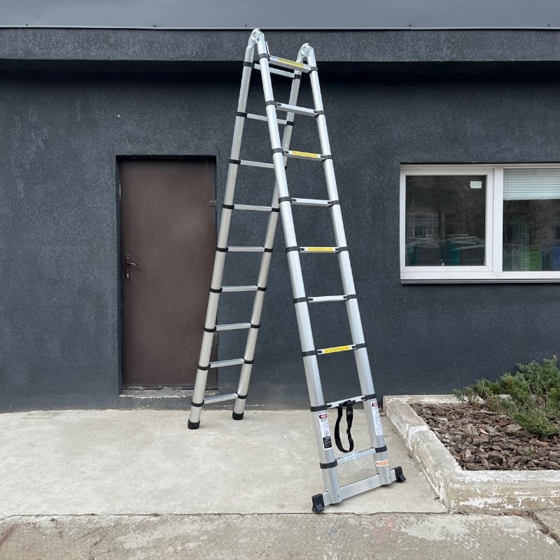 Стременка телескопическая 2 х 8 ступеней может использоваться как стремянка и как приставная раздвижная лестница.