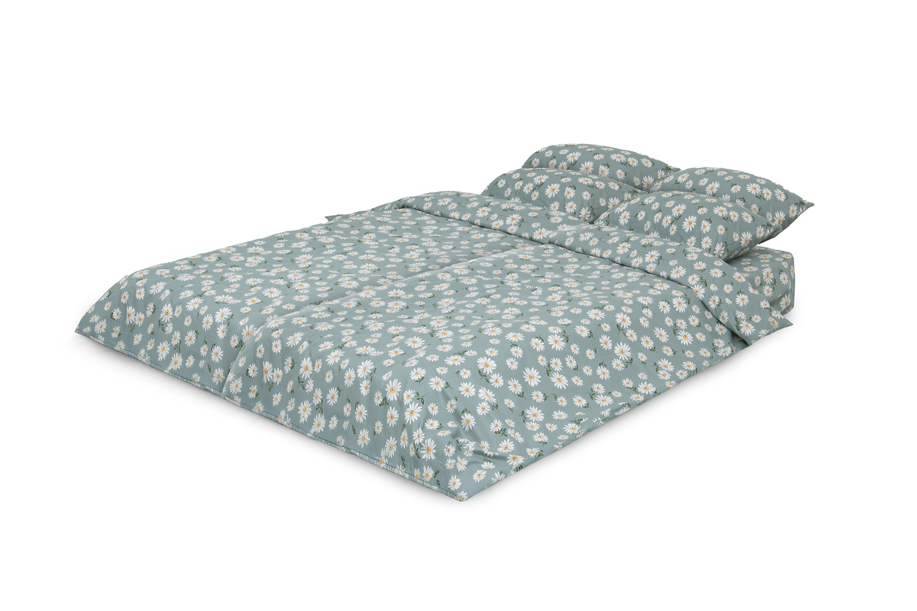 Описание Комплект постільної білизни Веста-6 (сімейний, полісатин, наволочки: 50х70 см 2 шт та 70х70 см 2 шт, ромашки, м'ятний) IMI