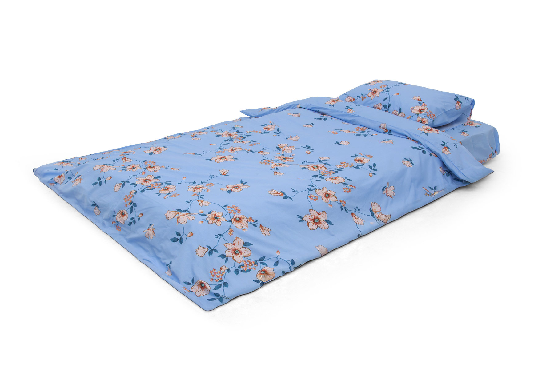 Набір постільної білизни, виготовлений з комбінованої тканини (50% бавовна, 50% поліестер) щільністю 125 г/м², поєднує в собі найкращі властивості натуральних і синтетичних волокон. Бавовна забезпечує м'якість, повітропроникність і комфорт, тоді як поліестер додає міцності, довговічності та стійкості до зминання. Тканина має приємну на дотик текстуру і легкий блиск.