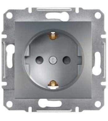 Характеристики товара Розетка одинарная с защ.шторками без рамки сталь Asfora, EPH2900262