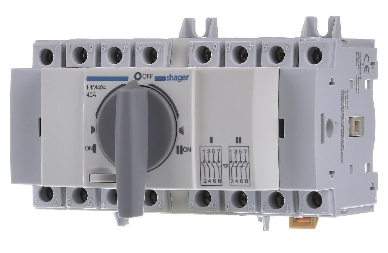 Характеристики товара Переключатель Hager HIM404 I-0-II 40А 400/690В 4P 7м